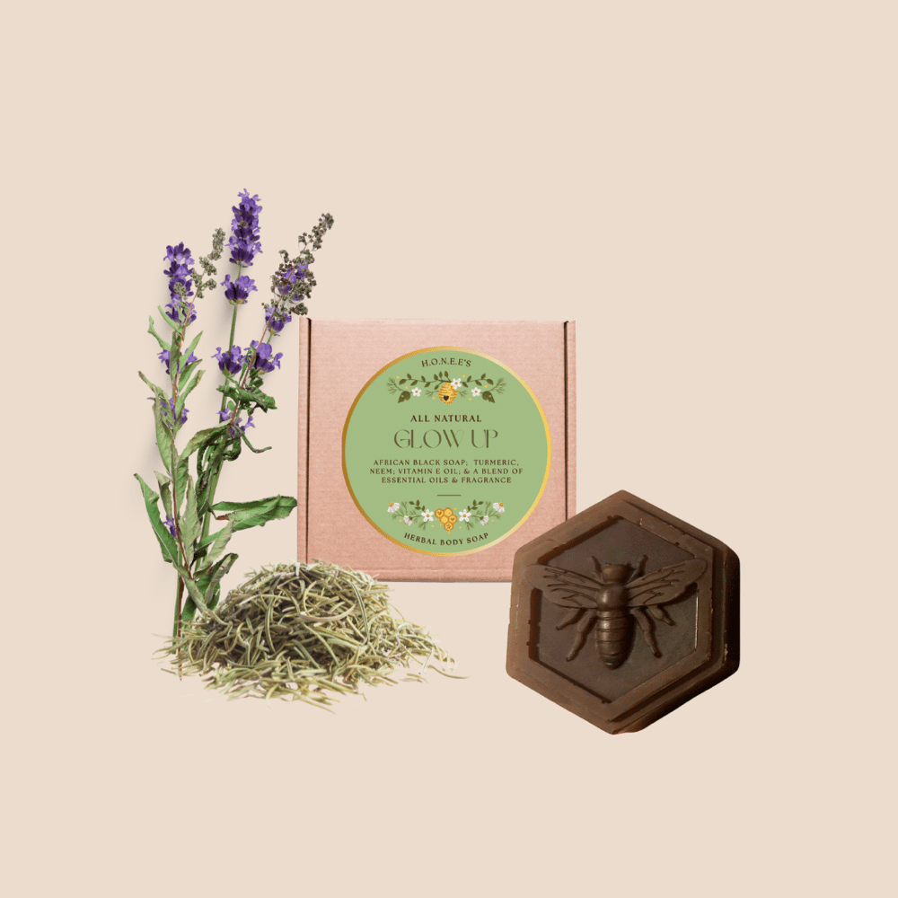 Glow Up by HONEE Healing is a powerful, plant-based bar soap designed to detoxify, brighten, and restore your skin’s natural radiance. Made with African black soap, turmeric, and neem, it targets blemishes, dark spots, and inflammation while deeply cleansing and balancing the skin. The calming scent of lavender and invigorating rosemary create a refreshing, spa-like experience with every use. Perfect for face and body, Glow Up is your daily ritual for clear, glowing, goddess-level skin.